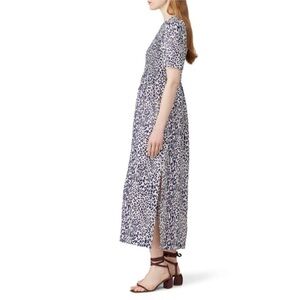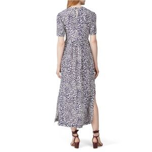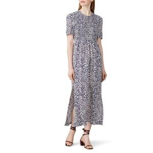 Blue Leopard-Printed Silk Fabrication Elevates This Modern Baum Und Pferdgarten Midi Dress Styled with Flattering Front Smocking.