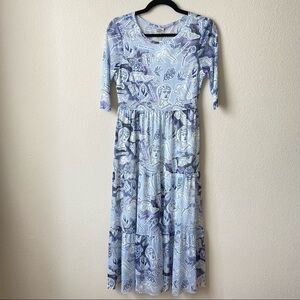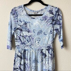 Baum Und Pferdgarten Jones Dress. Whimsical blue dress with the most unique design. The dress is sheer and partially lined. The skirt part is tiered.