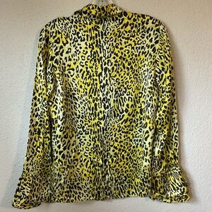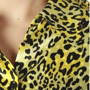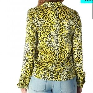 Designer Baum Und Pferdgarten Mildred top in lemon Leo leopard print. **Pre-owned condition with a few tiny spots on top and one fabric on side of front (see photos 9-11 for reference, not really noticeable when worn due to loud print)**