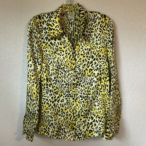 Baum Und Pferdgarten Mildred Silk Top in Lemon Leo Yellow Leopard Print Size 34