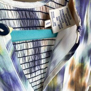 for tags: designer, contemporary, colorful, artsy, art, trendy, trend, tie dye, pattern, silk blend, business casual, wedding, event, party, celebration, midi, blue, sophisticated, classy, classic, luxury