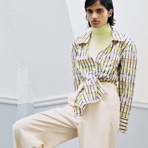 Baum und Pferdgarten Merona Blouse in Peach/Yellow/Black Check. Size 36 - Fits like a Small! In great preloved condition. Fabric is really nice, almost seersucker texture but not quite!