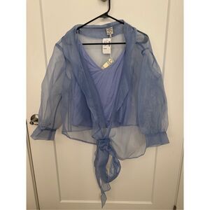 Gorgeous Chiffon wrap top with collar and drop shoulders. Comes with matching slip top. A beautiful romantic blouse to be matched with both trousers or skirts.