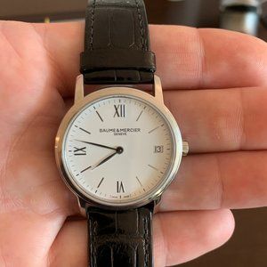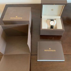 Beautiful, like new condition. Single owner, only worn a handful of times. Originally purchased new at Saks 5th Avenue. Black alligator strap. Very thin case. Recently replaced battery. Original boxes and owner's manual included.