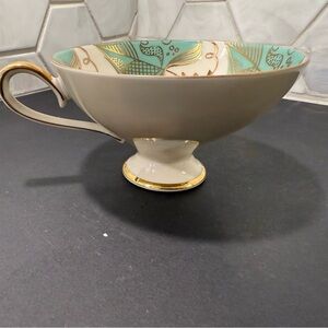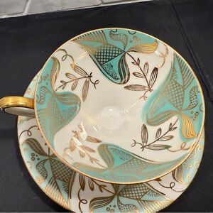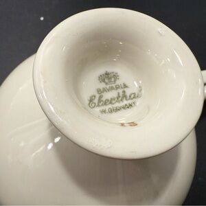 Bavaria Eberthal Bone China Green & Gold Floral Tea Cup & Saucer Germany VINTAGE