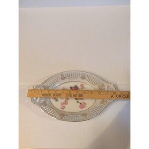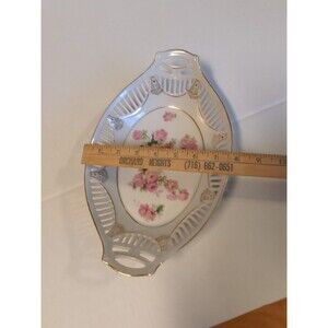 Bavaria German Reticulated Serving Bowl Dish Rose Floral Oval Double Handled