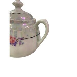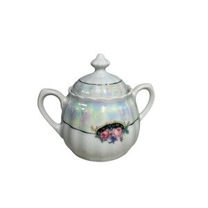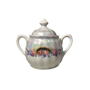 Add a touch of vintage elegance to your kitchen with this beautiful Bavaria Lusterware Sugar Bowl with Lid. The bowl is made of high-quality porcelain and features a stunning floral motif with a metallic iridescent glaze finish that will catch the eye of anyone who sees it. The set includes a lid that fits snugly to keep your sugar fresh and protected.