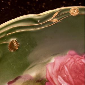 Bavaria Round Platter Porcelain Plate Pink Yellow Roses Green Gold Vintage