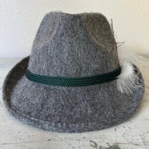 Bavarian Octoberfest Tyrolean German wool felt fedora hat Alpine gray feather