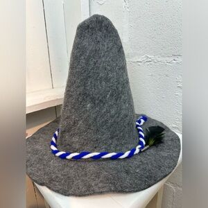 Bavarian Oktoberfest German Themed Felt Hat Feather Gray Blue White Rope