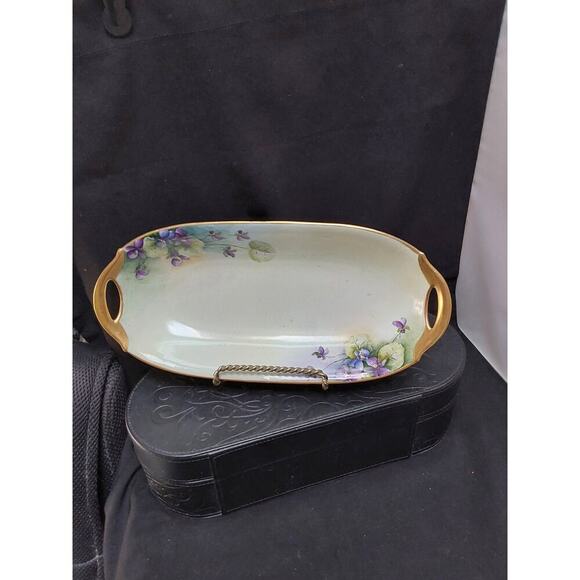 Bavarian purple pansies and heavy gold Celery tray tab handle