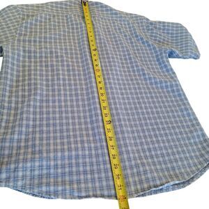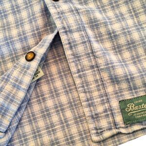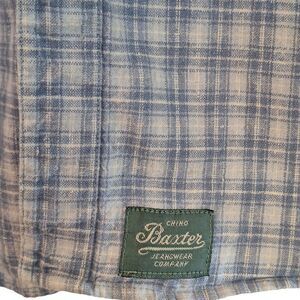 Baxter Brand Natural Clothing Shirt Linen Cotton Blend Blue Plaid L Band Collar