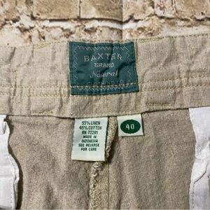 Baxter Brand Natural Mens 40 X 9 Tan Linen Cotton Pleated Chino Shorts in good used condition. No stains, tears or rips.