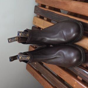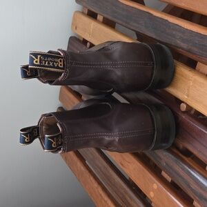 Men's Baxter Rider pull-on leather boots, UK size 7.5, US size 8. These belonged to my husband, who wore them a total of one time. Brown leather with side elastic inserts. Fantastic pre-owned condition. Fast shipping and careful packaging. (N)