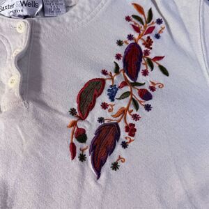 Baxter Wells Petite Ivory Floral Embroidered Henley Top Size L