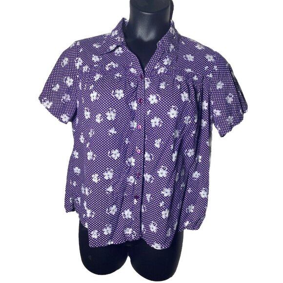 Baxter & Wells Purple Large Ditsy Floral Button Up Shirt Cottage Prairie 90s