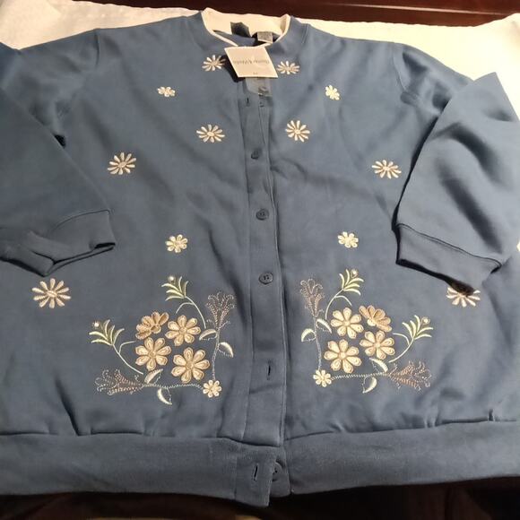 Baxter and Well Cotton Button-Up Cardigan Blue Size 1XL Embroidered Flowers NWT