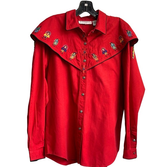 Baxter and Wells Red Embroidered Bead Embellished Western Shirt Women's Size L