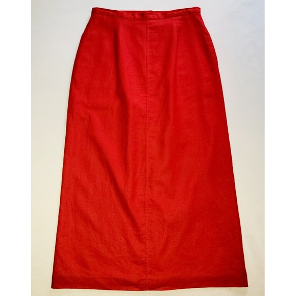 Baxter and Wells Women 12 Long Linen Blend Lined Zip Back Slit Pencil Striaght Red Skirt