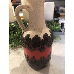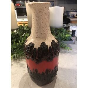 The Bay Ceramic Fat Lava Vase, 7120, in Fire Red Black Lava Cream Splatter Wear from Germany is a vintage piece that embodies the unique style of West German pottery in the Mid 20th Century. With its hand-painted design and lava finish, this art pottery vase showcases the creativity and craftsmanship of Bay Keramik. Standing at 8 inches tall and 3.5 inches long, this original piece is a standout addition to any collection of decorative pottery and glassware, reflecting the artistic flair of the 70s era. It’s a beautiful piece to add to any decor. No chips or cracks Preowned