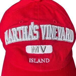This Bay State Apparel Martha’s Vineyard 3D Embroidered Baseball Cap in Red is 100% Cotton, One Size Fits All. In very good condition!