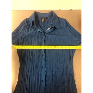 Bay Studio Career Petite Women’s Blue Long Sleeve Button Down Ruffle Blouse Size PL Preowned in good condition