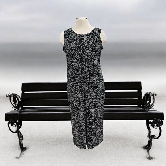 Keywords: Bay Studio Career, maxi dress, sleeveless, pleated, long dress, black dress, women's fashion, geometric pattern, elegant, versatile, comfortable, pre-owned, formal wear, evening attire, sustainable fashion.