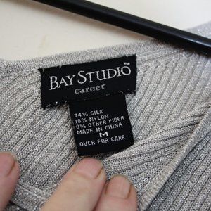 This Bay Studio Career silver sweater is a size medium. It is gently used but in excellent shape with no tears or flaws. Would be a good career piece with pants or skirt.