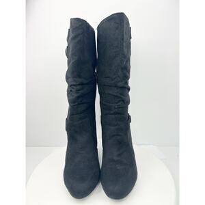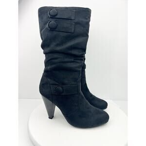 Bay Studio Natalie Black Faux Suede Button Detail Mid-Calf Boots Women’s Size 8M