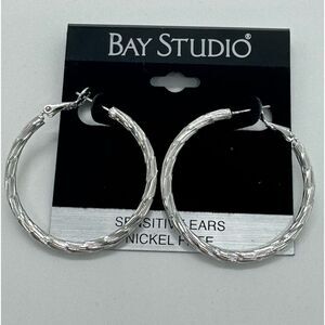 Bay Studio Silver Tone Textured Hoop Earrings 1.5 inch