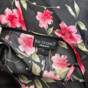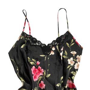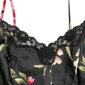 Bay Studio Sleepwear Floral Lace Trim Bow Satin Mini Slip Dress Black S Coquette