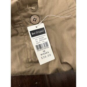 Bay Studio Womens Khaki Cropped Pants Size 10 Button Details Pockets