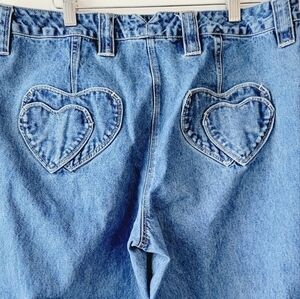Great conditions capris. No stains, rips or bad odors. Great to wear with cute tops. comfortable loose fit. Has cute heart pockets that makes them unique. Trendy, and vintage look. Has two fromt pockets. Can hold a belt if desire. Please see pictures for more details.