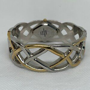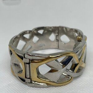 Bay studio women gold silver tone cuff bracelet watch 21mm quartz 7” running