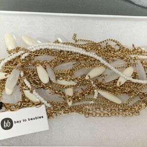 NWT Bay to Baubles Rhionna Opal Fringe Gold-tone White Chains Long Necklace
