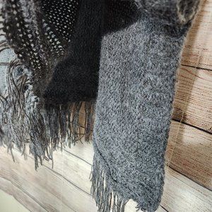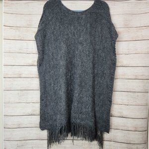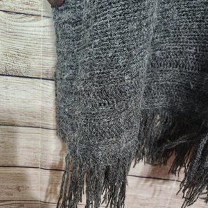 Bayberry Road Fringe Bottom Poncho Side Buttons Gray Women's One Size