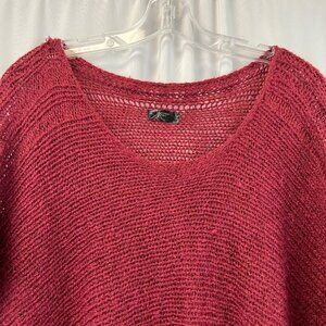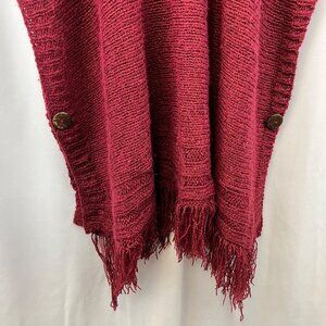 Bayberry Road Women’s Knit Poncho Sweater Half Sleeve Burgundy One Size Fringe