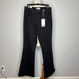 Bayeas - Black High Rise Flare Jeans with Crinkle
