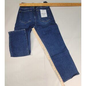 Bayeas Jeans Mid Rise Cross Over Button Straight Leg Denim Womens Size 27 NEW