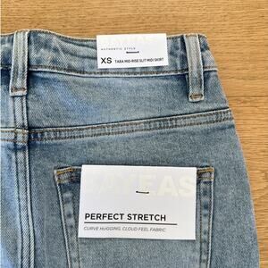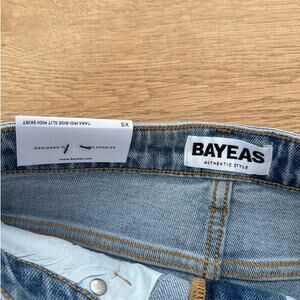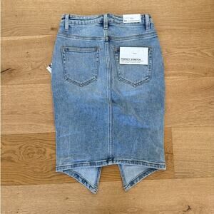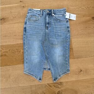 Bayeas - Tara Mid Rise Slit Denim Midi Skirt in Blue