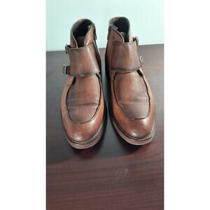 Bayer Double Monk Strap Leather Ankle Boot Shoes Men's size 40 Brown Side Zip Buckle