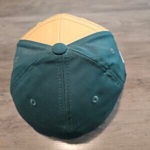 -The hat is primarily green with gold accents and stripes, reflecting Baylor University's official colors.
