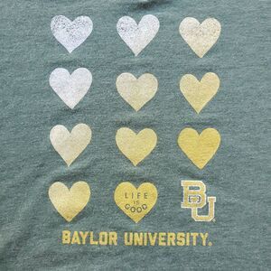 Baylor University V Neck T Shirt Womens L Life is Good Classic Fit Green Hearts