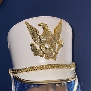 Bayly Marching Band Hat – White & Gold – Style 212 – Bayly‑Stron Hollywood, FL – Gold Eagle & Chain Accents