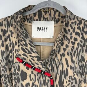 Bazar Deluxe Leopard Print Beaded Cotton Jacket Womens Sz 42 US 6 Brown