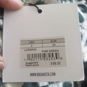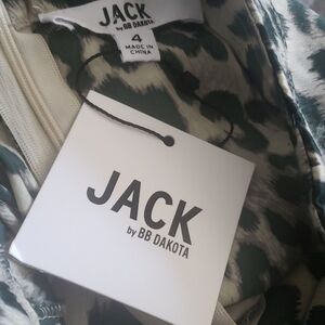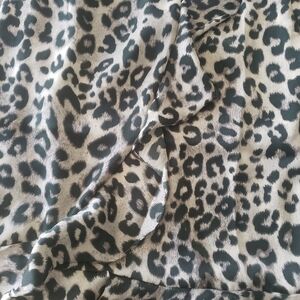 Great green& beige leopard skirt with faux wrap ruffle skirt with flirty ruffle hem. Zips in back Soft matt satin poly fabric Size 4 NEW WITH TAGS