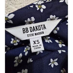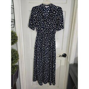Bb Dakota By Steve Madden XS Navy Floral Maxi Dress 100% Polyester Short Sleeve