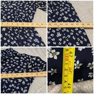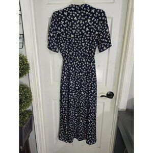 A lightweight and breathable midi dress with a delicate floral print. Its navy hue and short sleeves make it a versatile wardrobe addition. NWT