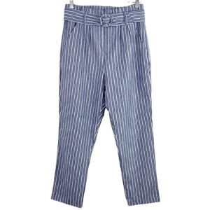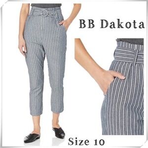 Bb Dakota Get in Line Stripe High Rise Crop Pants in Blue with White Size 10 New