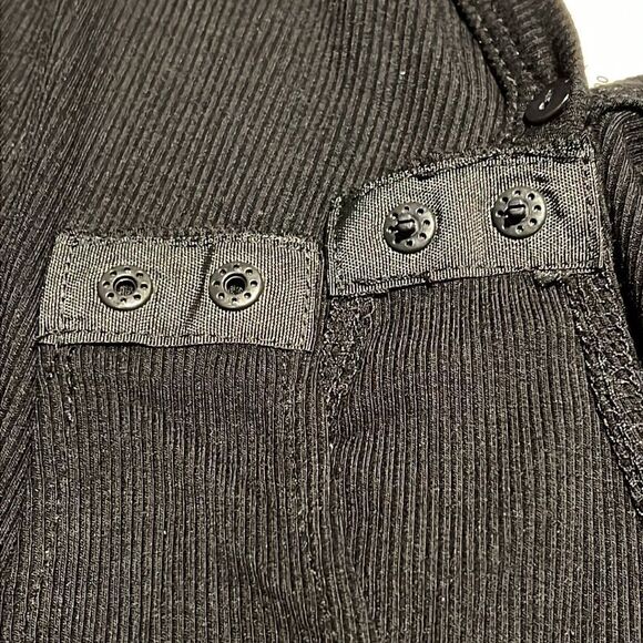 Black Ribbed Knit Henley Style Cap Sleeve Button Front Bodysuit BB Dakota by Steve Madden Sleek It To Me BM105586